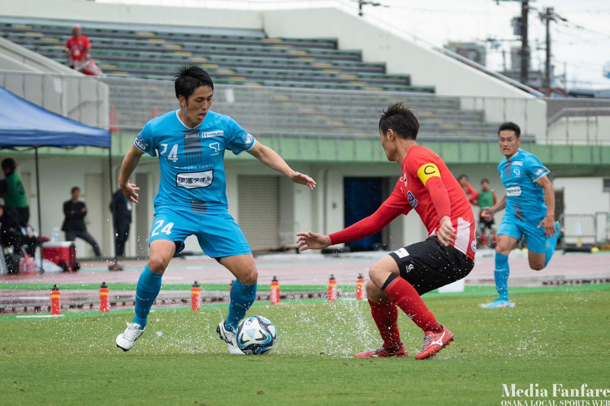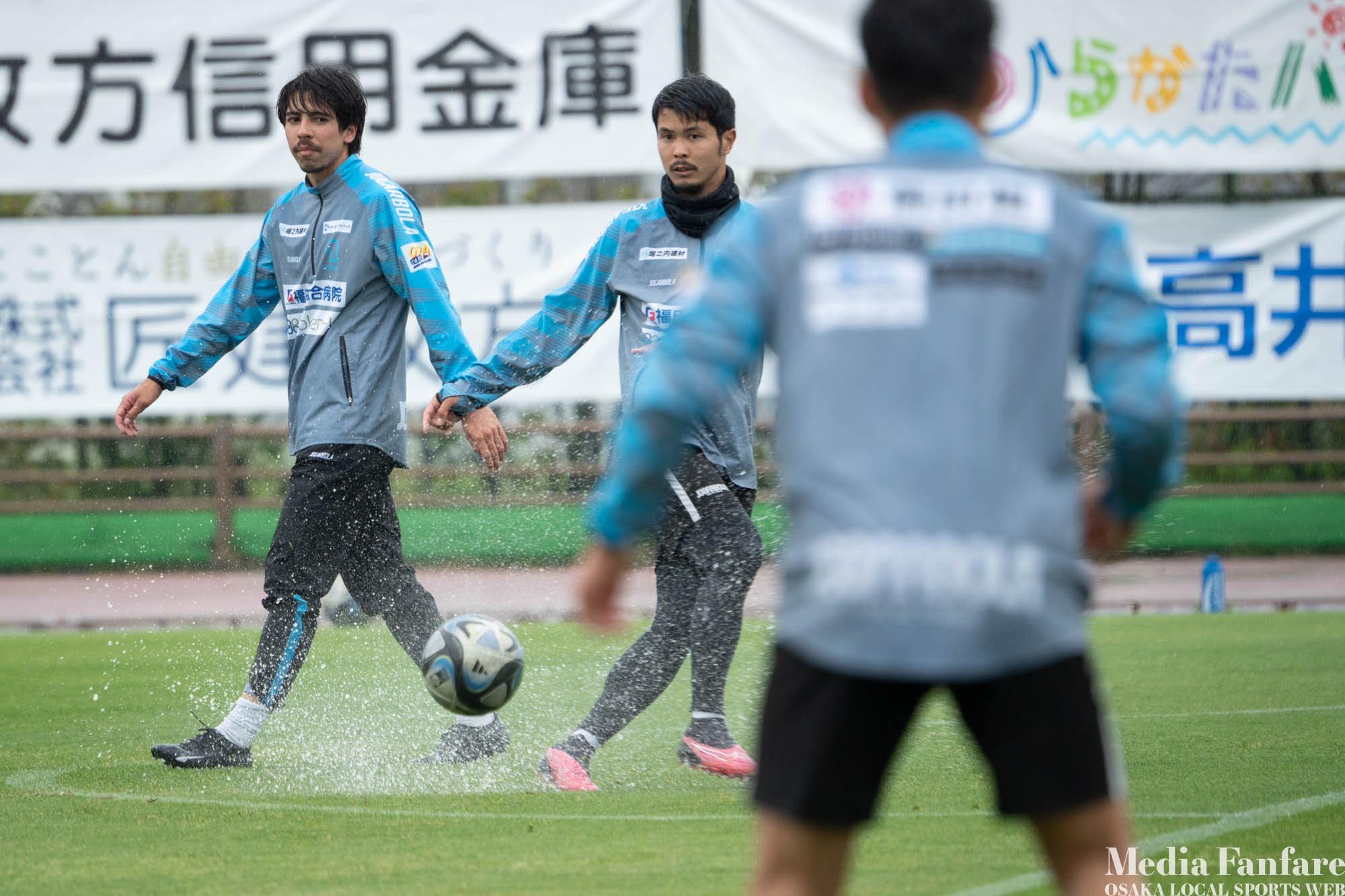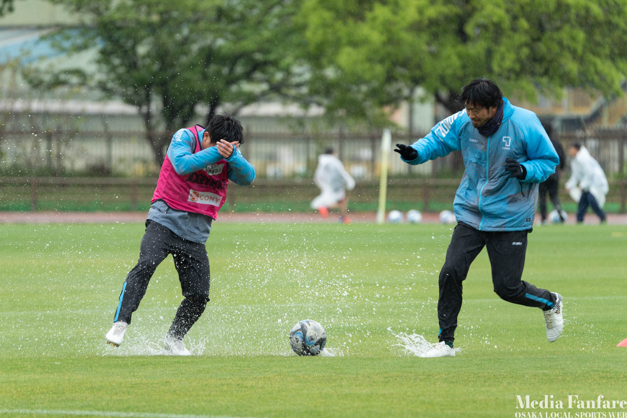 スリッピーなグラウンド状況ではスライディングタックルも多くなるので、こういう日は怪我の心配も増えます。