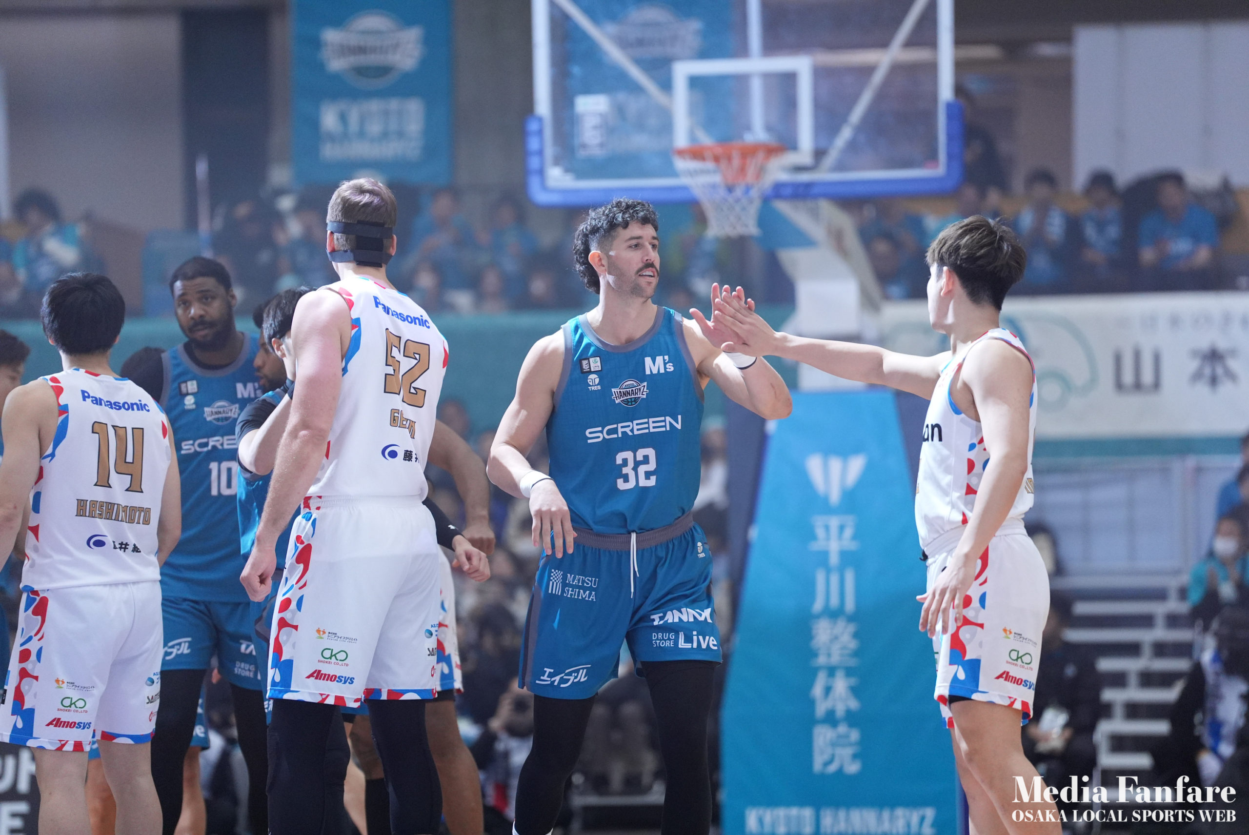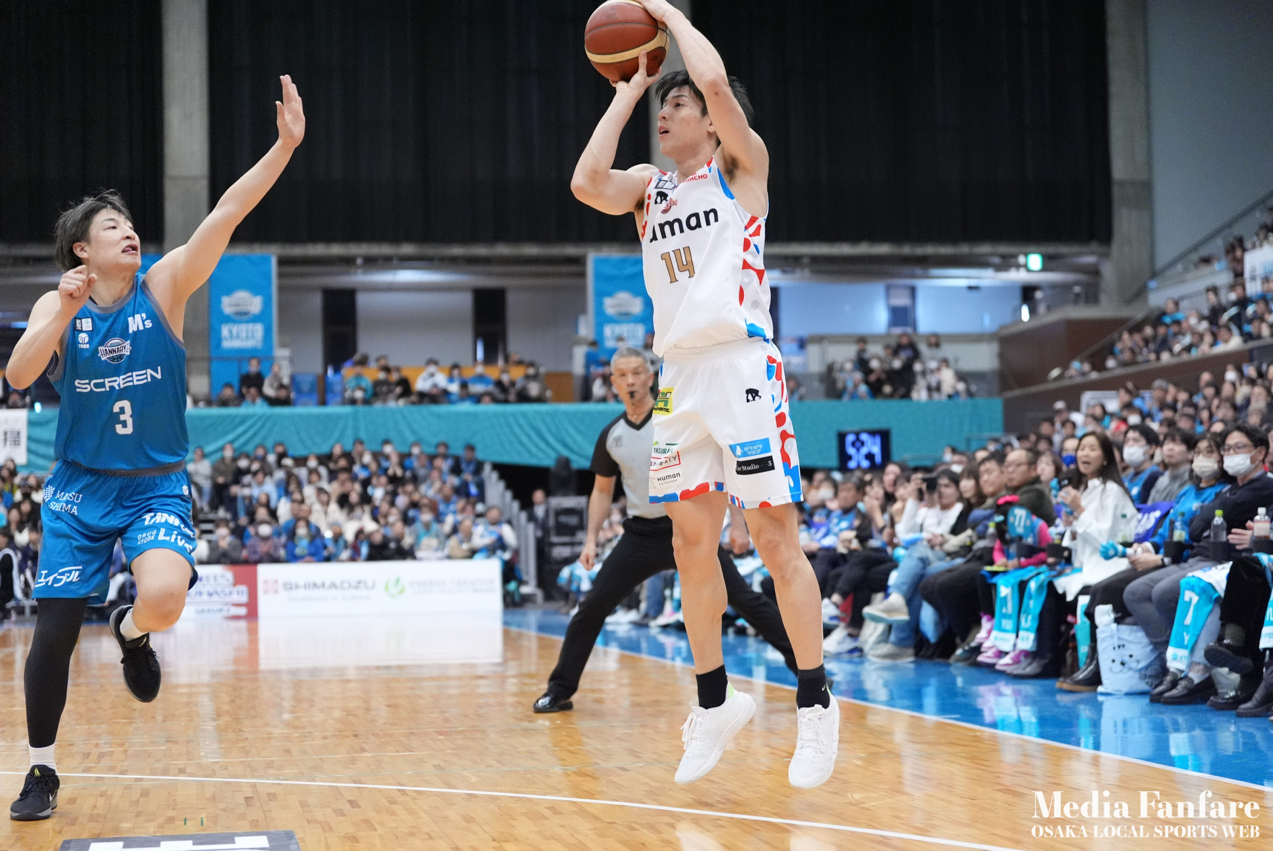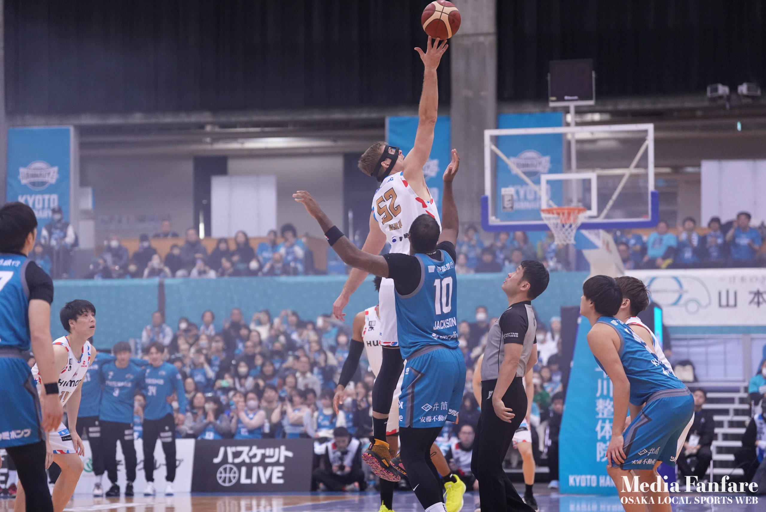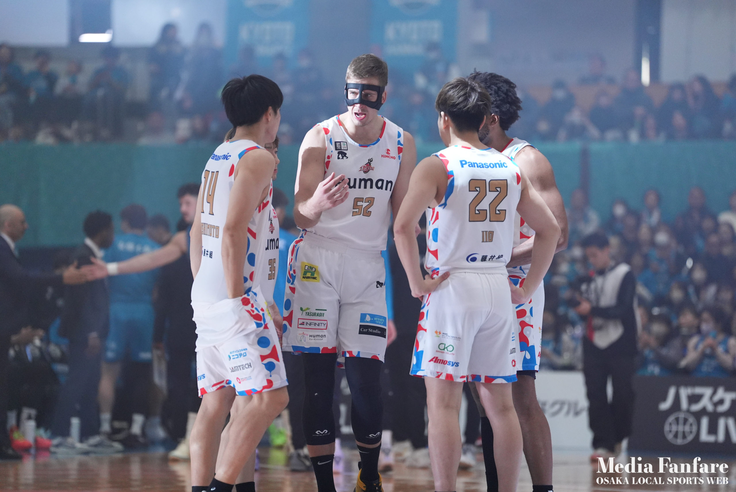 しかし食らいつく京都、残り3分を切ったところで岡田、川嶋が続けてスリーポイントシュートを決め、ひと桁点差に縮め逆転の可能性を残す。少ない残り時間で逆転を狙う京都だったが、鈴木が勝負を決定づけるスリーを決め、最後まで流れを渡さず83-94で大阪が勝利。