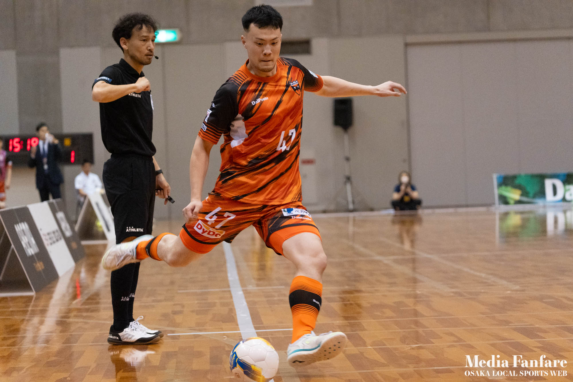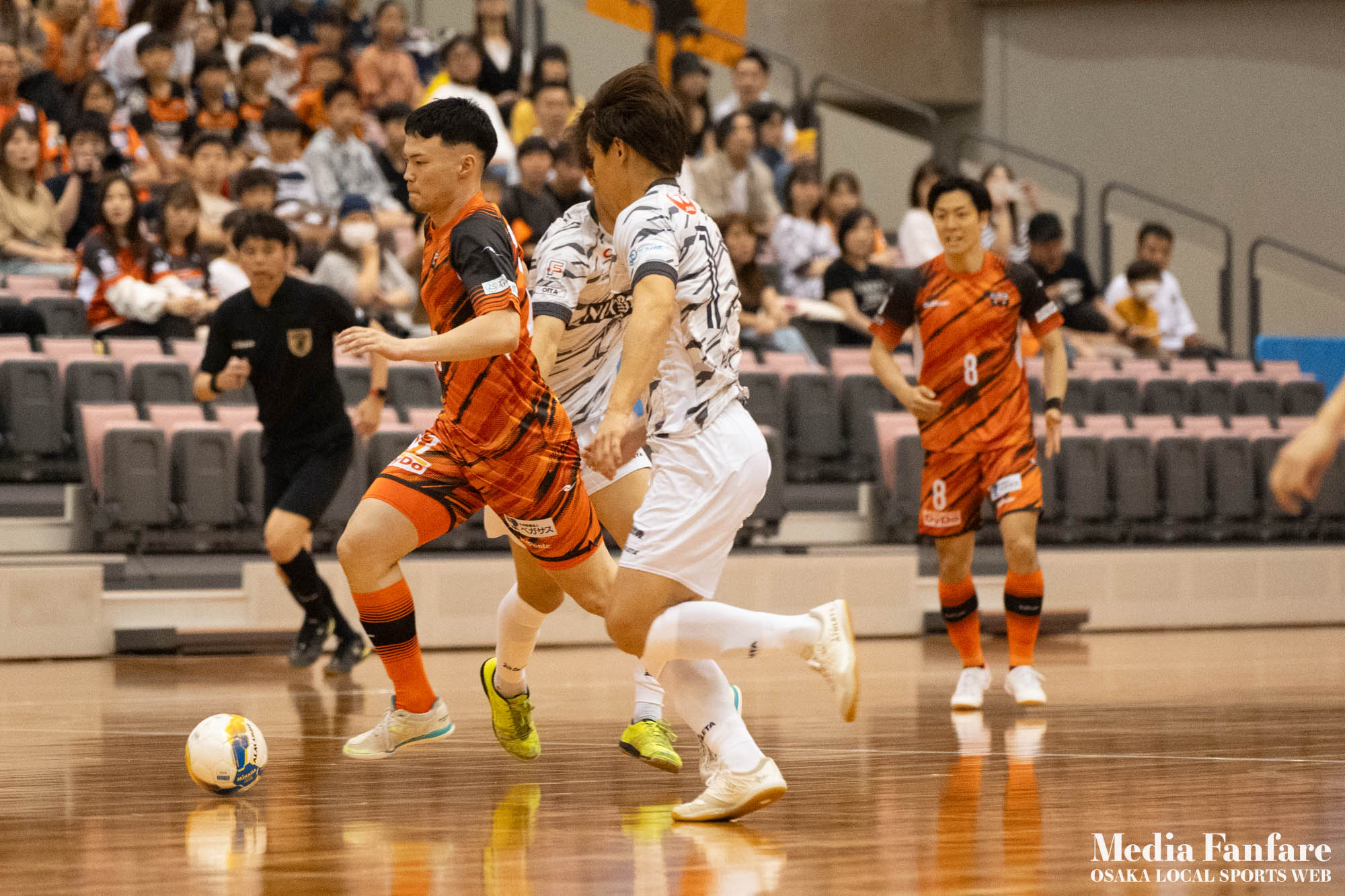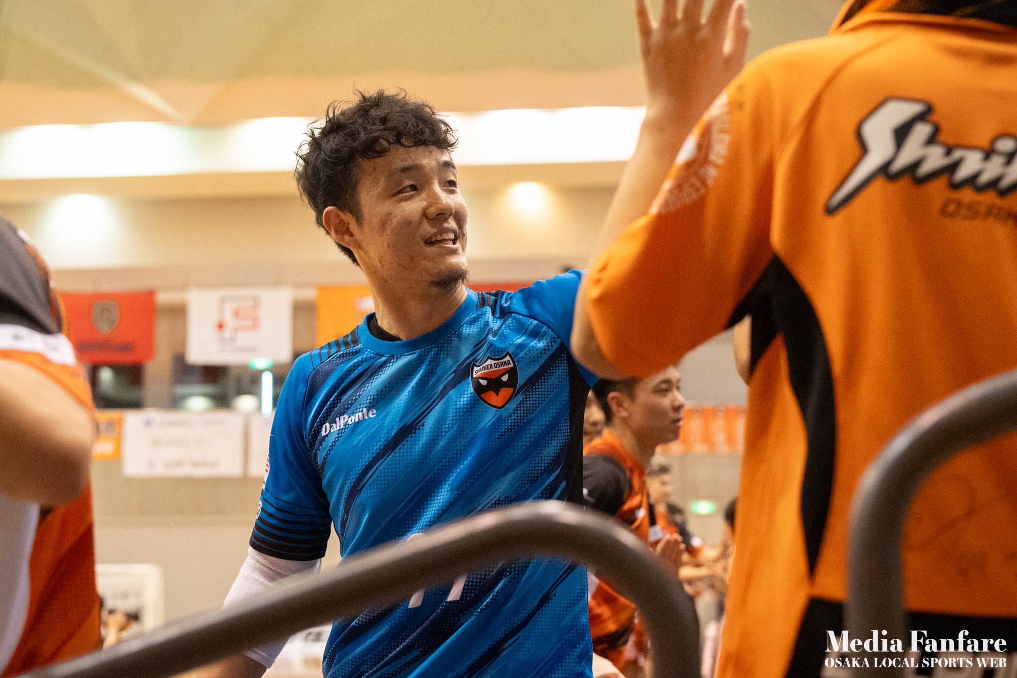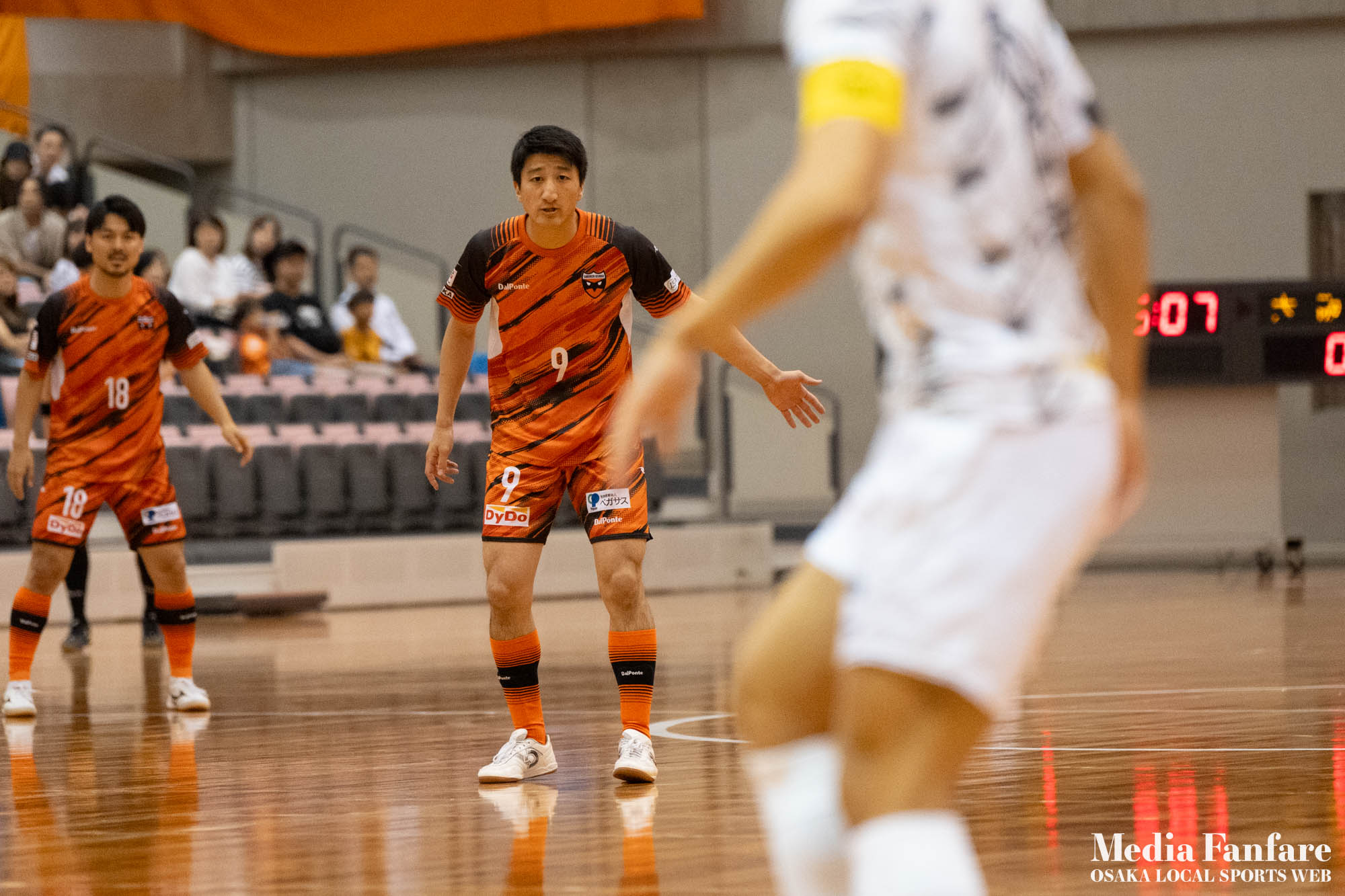 6月172023 [Fリーグ 第4節]新10番がメモリアルマッチでゴール、チームは3連勝(2023-24) シュライカー大阪 Contents1 加藤翼選手、Fリーグ通算100試合出場2 早い時間での失点、先制はバサジィ大分3 翼、未渚実のW加藤のゴールで勝負を決める4 ボルクバレット北九州vs名古屋オーシャンズ5 NEXT HOMEGAME6 PHOTO GALLERY 加藤翼選手、Fリーグ通算100試合出場 前節アウェーで立川アスレティックFCに勝利し、シーズン初の連勝と勢いに乗るシュライカー大阪。 6/17(土)に開催された第4節、ホームの岸和田市総合体育館にてバサジィ大分を迎え撃ちました。 なお、この日は上記の試合後に、ボルクバレット北九州 vs 名古屋オーシャンズの一戦も共同開催されました。 この試合でシュライカー大阪の加藤翼選手が、Fリーグ通算100試合出場を達成。キックオフ前にセレモニーが催され、息子さんから花束が贈呈されました。昨シーズンで現役引退された、相井忍選手から背番号10を引き継いだ加藤翼選手。大阪のエースとして、さらなる期待がかかります。 今節は清水寛治選手ではなく、中井駿斗選手がスタメン入り。 [スターティングメンバー] #7.野村 悠翔 (FP) #12.ナカマツ ルアン (FP) #23.中井 駿斗 (FP) #98.田村 研人 (FP) #16.樋口 就大 (GK) [ベンチメンバー] #6.齋藤 日向 (FP) #8.加藤 未渚実 (FP) #9.磯村 直樹 (FP) #10.加藤 翼 (FP) #11.清水 寛治 (FP) #14.畠山 勁志 (FP) #18.田村 友貴 (FP) #47.井口 凜太郎 (FP) #99.眞野 翔太 (GK) 早い時間での失点、先制はバサジィ大分 試合開始からおよそ3分。バサジィ大分が自陣からのロングパスを胸でトラップしてボレーシュート。早い時間帯に大分が先制します。 なかなか流れをつかめないシュライカー大阪でしたが、前半15分、清水寛治選手が左サイドを縦に抜けて中へ折り返す。 それを好調の野村悠翔選手が詰めて同点ゴール。今シーズン4得点目、順調に得点を重ねます。 翼、未渚実のW加藤のゴールで勝負を決める 1-1と同点で迎えた後半。前半のスタメンとは違う4人がフィールドに立ちます。 FKのキッカーを任されているナカマツ ルアン選手。左足から放たれる強烈なシュートは、今シーズンのシュライカー大阪の大きな武器のひとつ。 28分、GK樋口選手の手から前線の齋藤選手、加藤翼選手と少ないパスでつなぎシュート。GKの足にはじかれるも、シュートの勢いが勝り弧を描いてゴールネットを揺らす。 加藤翼選手の、メモリアルマッチを自ら祝福するゴールでシュライカー大阪が逆転。 後半、バサジィ大分のファウルがかさみ、ファウル数は5。フットサルでは、前後半それぞれでファウル数が6になると第2PK(※)が与えられます。 ※第2PKとは、ゴールから10メートル離れた位置にある、第2ペナルティマークから蹴るフリーキックのこと。通常のフリーキックでは、守る側のチームの選手がボールの前に並んで壁を作り、シュートを妨害することができますが、第2PKでは壁を作ることが出来ません。キッカーとキーパーの1対1となるPKと同じようになるため、第2PKと呼ばれています。 残り3分半ほどになったところで、1点を追うバサジィ大分はパワープレーを仕掛けます。 清水寛治選手がボールとディフェンスの間にうまく身体を入れ、後ろからプレスにきた大分の選手に倒されファウル獲得。これが6つ目のファウルとなり、第2PKで追加点のチャンス。残り時間が少なく、焦っている大分の選手のファウルを誘う清水選手の隠れたファインプレー。 蹴るのは、加藤未渚実選手。 ゆっくり助走をつけ、ゴレイロの動きを見てシュート。 見事ゴール右サイドに突き刺さり、ダメ押しの追加点。 今節も好セーブ連発のGK樋口就大選手。今季サテライトから昇格したとは思えない安定感。 3-1で試合終了、シュライカー大阪は見事3連勝。 ボルクバレット北九州vs名古屋オーシャンズ 共同開催の2試合目は、ボルクバレット北九州 vs 名古屋オーシャンズ。試合の合間にキッチンカーの「魯肉飯(ルーローハン)カレー」でエネルギー補給。 2試合目も1点を争う好ゲームとなりました。アンドレシート選手のゴールで、3連勝中の名古屋オーシャンズが先制するも、前半終盤にボルクバレット北九州のジュニーニョ選手が決めて同点に。さらに、後半ジュニーニョ選手が2点目を決めて北九州が逆転。いよいよ名古屋の連勝ストップか、と思いきや、さすがは王者。29分、34分にダルラン選手が連続ゴールを決め、2-3で名古屋オーシャンズが勝利。開幕から4連勝と、名古屋が前評判通りの強さを見せています。 NEXT HOMEGAME シュライカー大阪の次のホームゲームは、7/2(日)の強敵湘南ベルマーレ戦。4試合で22得点と驚異的なペースでゴールを量産している湘南ベルマーレ。一方、これまでリーグ最少失点数5の堅守が光るシュライカー大阪。2位と3位、注目の上位対決となります。(2023/6/20 時点) 日時2023/7/2(日) 13:00キックオフ 会場丸善インテックアリーナ大阪 (※2023年7月1日(土)からは「Asueアリーナ大阪 」に名称変更) 試合シュライカー大阪 vs 湘南ベルマーレ (シ
