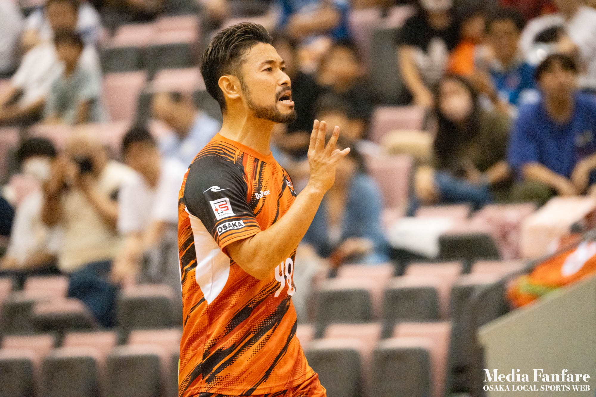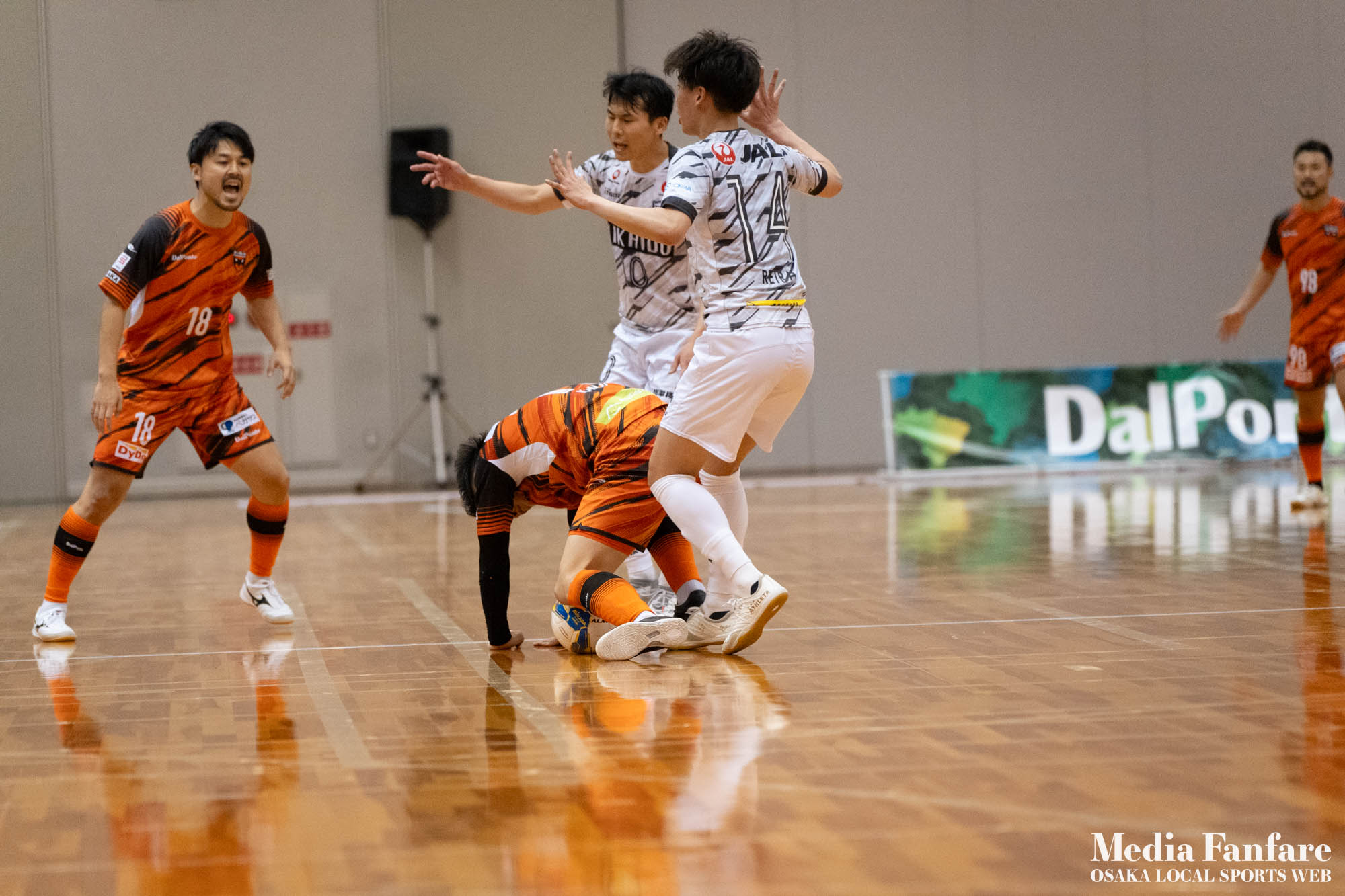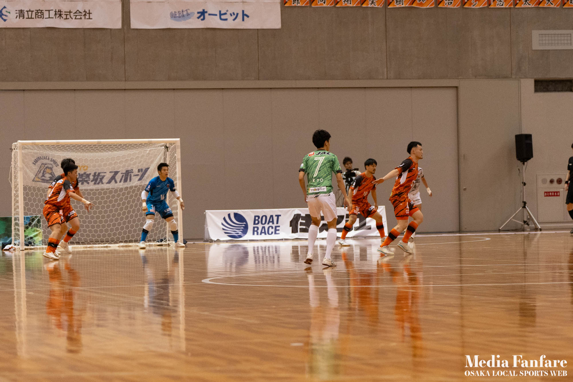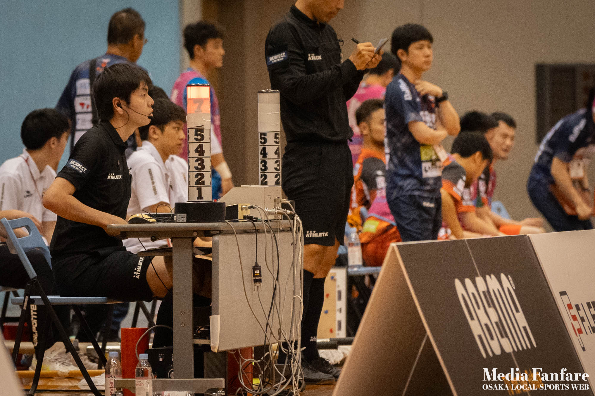6月172023 [Fリーグ 第4節]新10番がメモリアルマッチでゴール、チームは3連勝(2023-24) シュライカー大阪 Contents1 加藤翼選手、Fリーグ通算100試合出場2 早い時間での失点、先制はバサジィ大分3 翼、未渚実のW加藤のゴールで勝負を決める4 ボルクバレット北九州vs名古屋オーシャンズ5 NEXT HOMEGAME6 PHOTO GALLERY 加藤翼選手、Fリーグ通算100試合出場 前節アウェーで立川アスレティックFCに勝利し、シーズン初の連勝と勢いに乗るシュライカー大阪。 6/17(土)に開催された第4節、ホームの岸和田市総合体育館にてバサジィ大分を迎え撃ちました。 なお、この日は上記の試合後に、ボルクバレット北九州 vs 名古屋オーシャンズの一戦も共同開催されました。 この試合でシュライカー大阪の加藤翼選手が、Fリーグ通算100試合出場を達成。キックオフ前にセレモニーが催され、息子さんから花束が贈呈されました。昨シーズンで現役引退された、相井忍選手から背番号10を引き継いだ加藤翼選手。大阪のエースとして、さらなる期待がかかります。 今節は清水寛治選手ではなく、中井駿斗選手がスタメン入り。 [スターティングメンバー] #7.野村 悠翔 (FP) #12.ナカマツ ルアン (FP) #23.中井 駿斗 (FP) #98.田村 研人 (FP) #16.樋口 就大 (GK) [ベンチメンバー] #6.齋藤 日向 (FP) #8.加藤 未渚実 (FP) #9.磯村 直樹 (FP) #10.加藤 翼 (FP) #11.清水 寛治 (FP) #14.畠山 勁志 (FP) #18.田村 友貴 (FP) #47.井口 凜太郎 (FP) #99.眞野 翔太 (GK) 早い時間での失点、先制はバサジィ大分 試合開始からおよそ3分。バサジィ大分が自陣からのロングパスを胸でトラップしてボレーシュート。早い時間帯に大分が先制します。 なかなか流れをつかめないシュライカー大阪でしたが、前半15分、清水寛治選手が左サイドを縦に抜けて中へ折り返す。 それを好調の野村悠翔選手が詰めて同点ゴール。今シーズン4得点目、順調に得点を重ねます。 翼、未渚実のW加藤のゴールで勝負を決める 1-1と同点で迎えた後半。前半のスタメンとは違う4人がフィールドに立ちます。 FKのキッカーを任されているナカマツ ルアン選手。左足から放たれる強烈なシュートは、今シーズンのシュライカー大阪の大きな武器のひとつ。 28分、GK樋口選手の手から前線の齋藤選手、加藤翼選手と少ないパスでつなぎシュート。GKの足にはじかれるも、シュートの勢いが勝り弧を描いてゴールネットを揺らす。 加藤翼選手の、メモリアルマッチを自ら祝福するゴールでシュライカー大阪が逆転。 後半、バサジィ大分のファウルがかさみ、ファウル数は5。フットサルでは、前後半それぞれでファウル数が6になると第2PK(※)が与えられます。 ※第2PKとは、ゴールから10メートル離れた位置にある、第2ペナルティマークから蹴るフリーキックのこと。通常のフリーキックでは、守る側のチームの選手がボールの前に並んで壁を作り、シュートを妨害することができますが、第2PKでは壁を作ることが出来ません。キッカーとキーパーの1対1となるPKと同じようになるため、第2PKと呼ばれています。 残り3分半ほどになったところで、1点を追うバサジィ大分はパワープレーを仕掛けます。 清水寛治選手がボールとディフェンスの間にうまく身体を入れ、後ろからプレスにきた大分の選手に倒されファウル獲得。これが6つ目のファウルとなり、第2PKで追加点のチャンス。残り時間が少なく、焦っている大分の選手のファウルを誘う清水選手の隠れたファインプレー。 蹴るのは、加藤未渚実選手。 ゆっくり助走をつけ、ゴレイロの動きを見てシュート。 見事ゴール右サイドに突き刺さり、ダメ押しの追加点。 今節も好セーブ連発のGK樋口就大選手。今季サテライトから昇格したとは思えない安定感。 3-1で試合終了、シュライカー大阪は見事3連勝。 ボルクバレット北九州vs名古屋オーシャンズ 共同開催の2試合目は、ボルクバレット北九州 vs 名古屋オーシャンズ。試合の合間にキッチンカーの「魯肉飯(ルーローハン)カレー」でエネルギー補給。 2試合目も1点を争う好ゲームとなりました。アンドレシート選手のゴールで、3連勝中の名古屋オーシャンズが先制するも、前半終盤にボルクバレット北九州のジュニーニョ選手が決めて同点に。さらに、後半ジュニーニョ選手が2点目を決めて北九州が逆転。いよいよ名古屋の連勝ストップか、と思いきや、さすがは王者。29分、34分にダルラン選手が連続ゴールを決め、2-3で名古屋オーシャンズが勝利。開幕から4連勝と、名古屋が前評判通りの強さを見せています。 NEXT HOMEGAME シュライカー大阪の次のホームゲームは、7/2(日)の強敵湘南ベルマーレ戦。4試合で22得点と驚異的なペースでゴールを量産している湘南ベルマーレ。一方、これまでリーグ最少失点数5の堅守が光るシュライカー大阪。2位と3位、注目の上位対決となります。(2023/6/20 時点) 日時2023/7/2(日) 13:00キックオフ 会場丸善インテックアリーナ大阪 (※2023年7月1日(土)からは「Asueアリーナ大阪 」に名称変更) 試合シュライカー大阪 vs 湘南ベルマーレ (シ