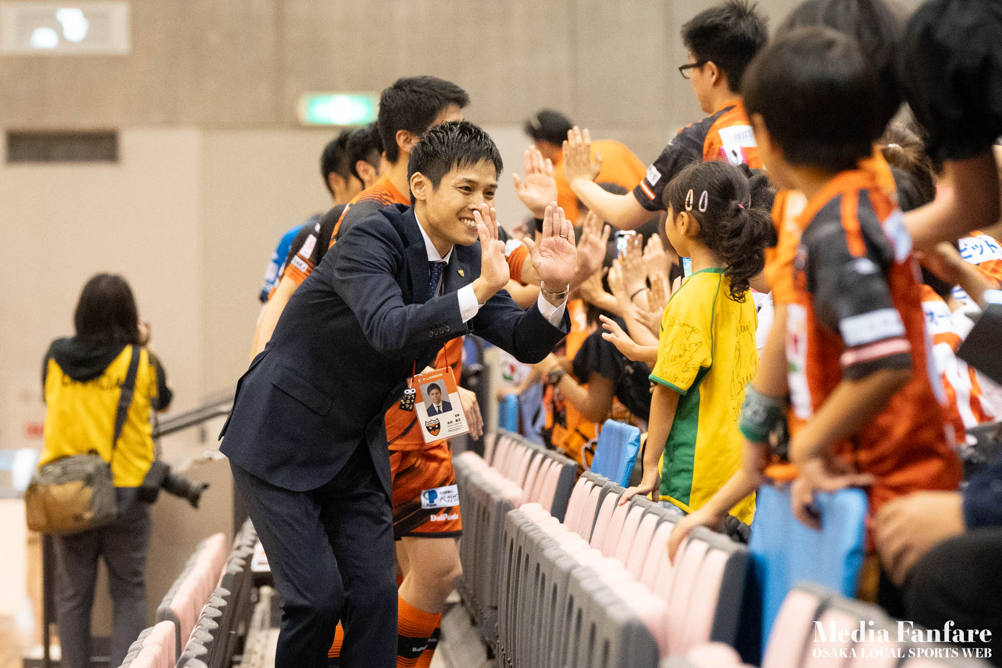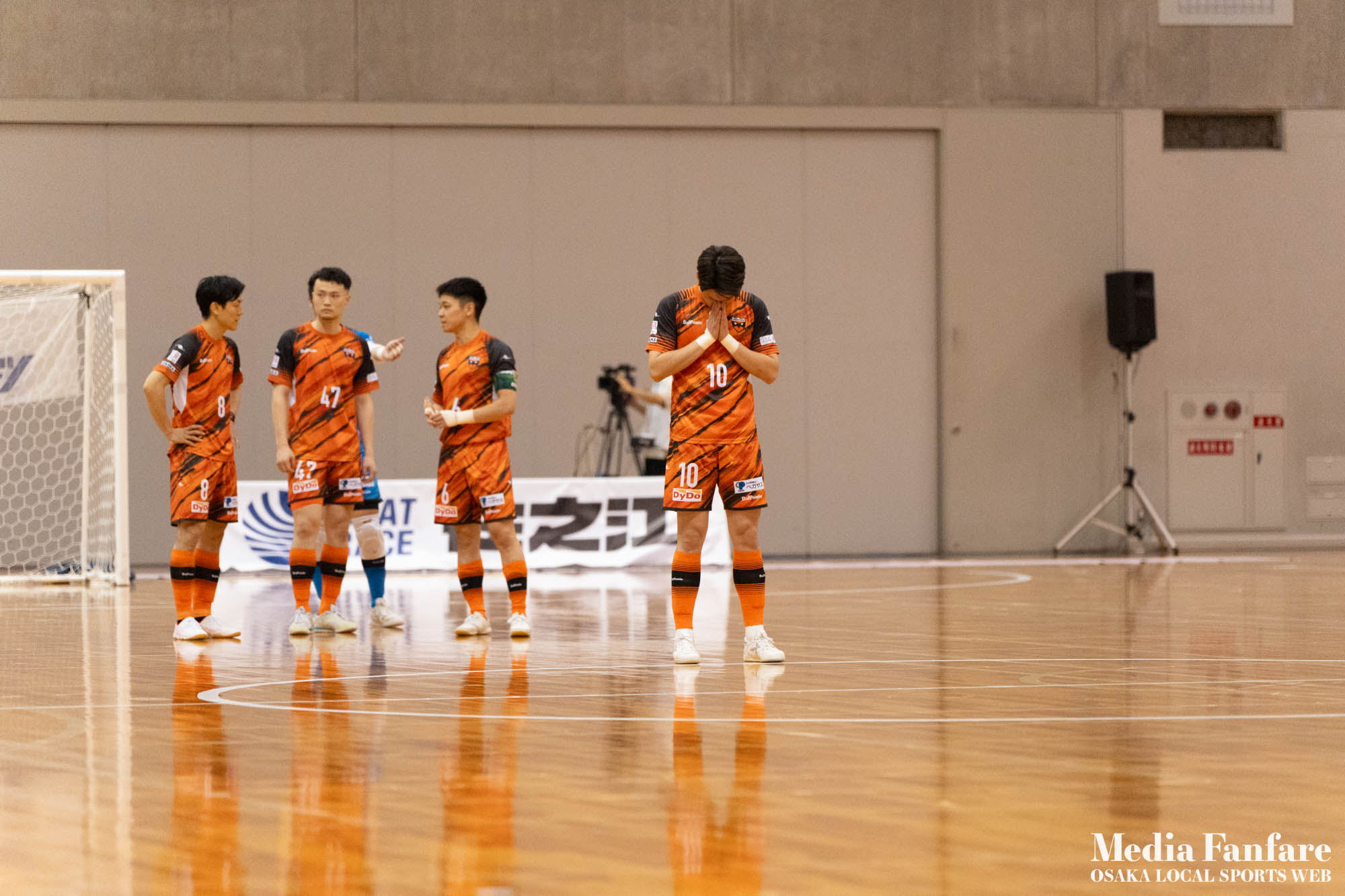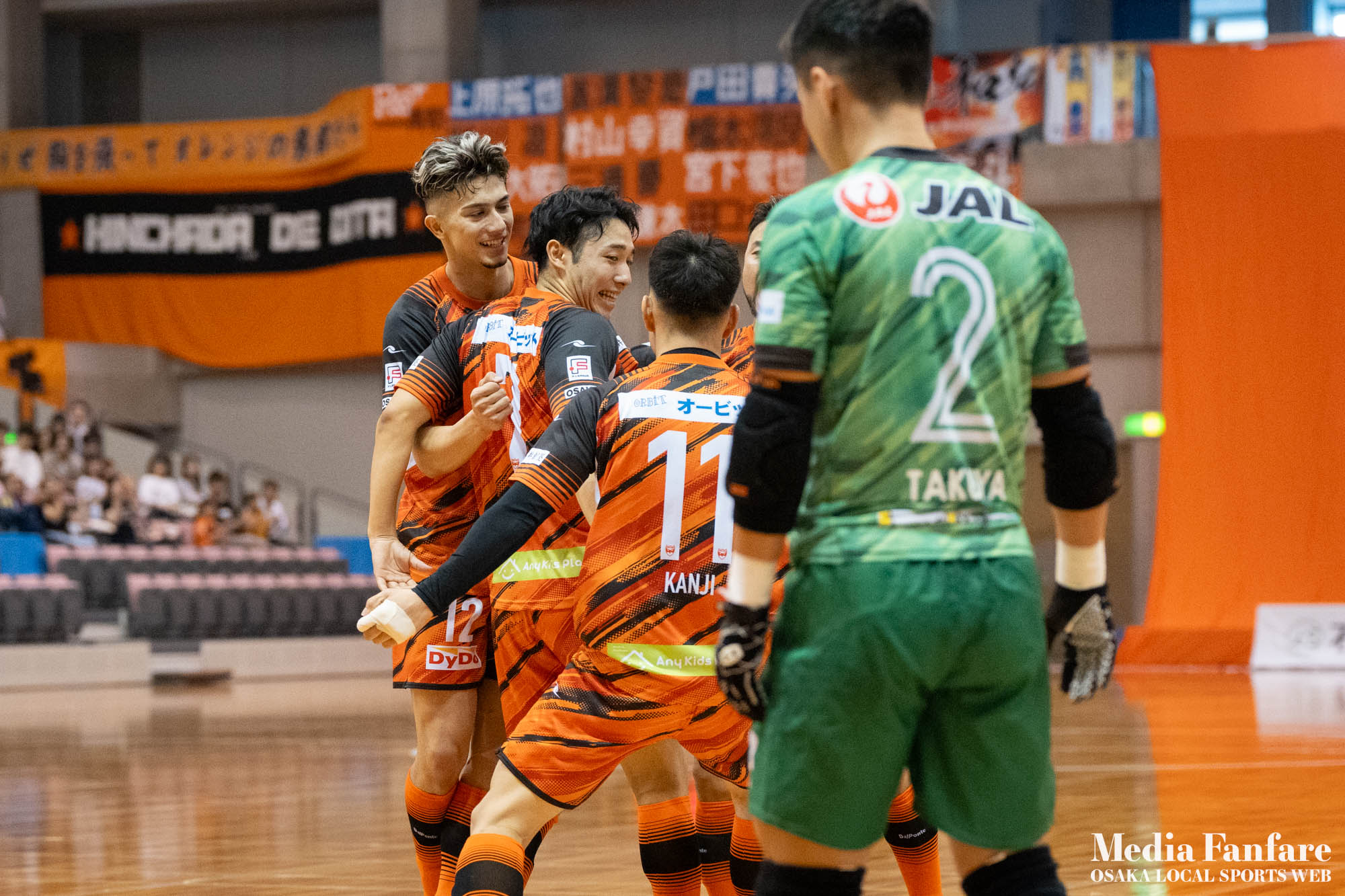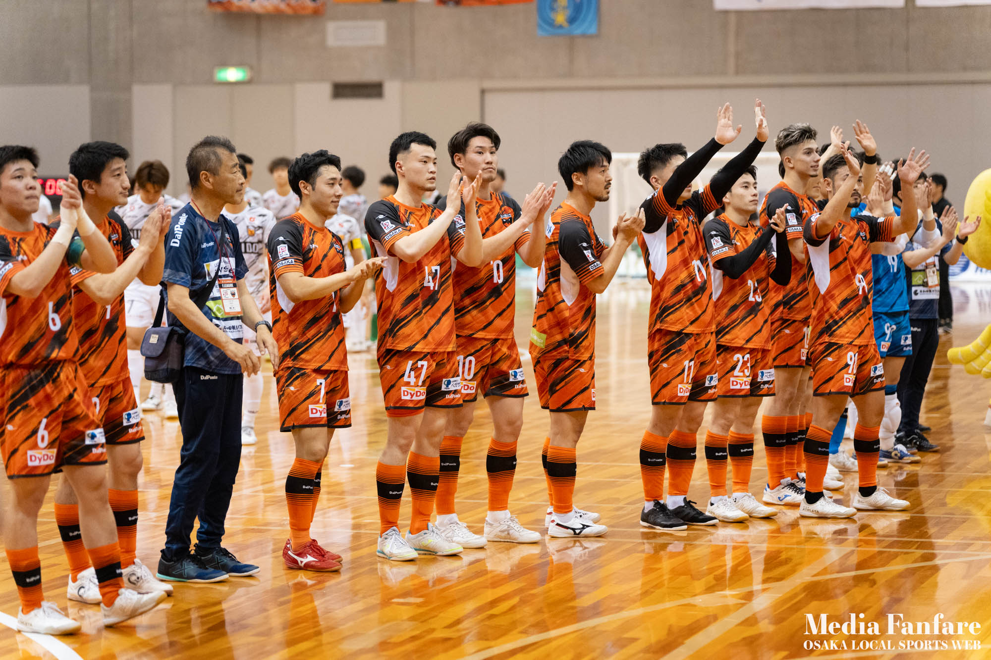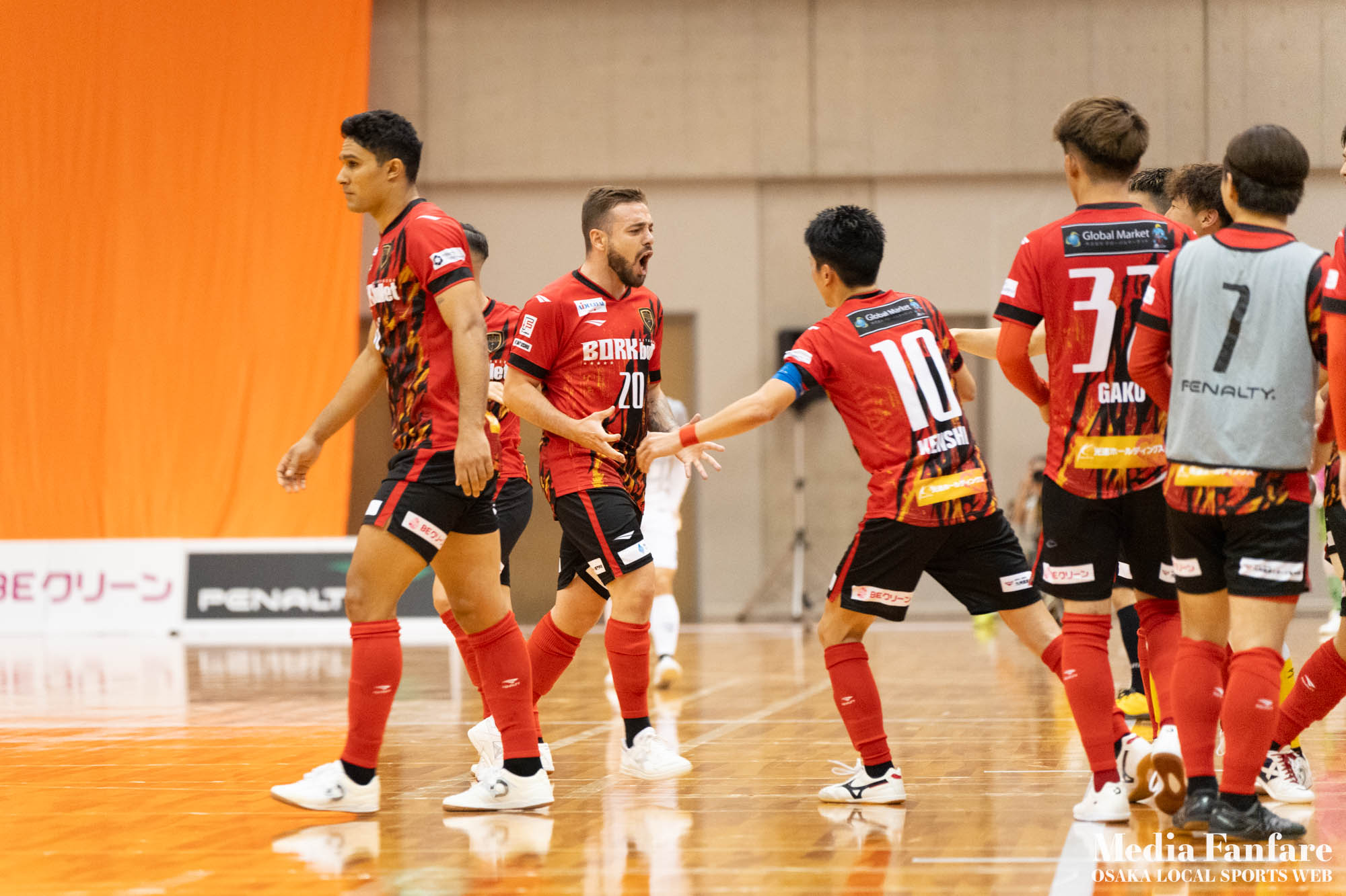 6月172023 [Fリーグ 第4節]新10番がメモリアルマッチでゴール、チームは3連勝(2023-24) シュライカー大阪 Contents1 加藤翼選手、Fリーグ通算100試合出場2 早い時間での失点、先制はバサジィ大分3 翼、未渚実のW加藤のゴールで勝負を決める4 ボルクバレット北九州vs名古屋オーシャンズ5 NEXT HOMEGAME6 PHOTO GALLERY 加藤翼選手、Fリーグ通算100試合出場 前節アウェーで立川アスレティックFCに勝利し、シーズン初の連勝と勢いに乗るシュライカー大阪。 6/17(土)に開催された第4節、ホームの岸和田市総合体育館にてバサジィ大分を迎え撃ちました。 なお、この日は上記の試合後に、ボルクバレット北九州 vs 名古屋オーシャンズの一戦も共同開催されました。 この試合でシュライカー大阪の加藤翼選手が、Fリーグ通算100試合出場を達成。キックオフ前にセレモニーが催され、息子さんから花束が贈呈されました。昨シーズンで現役引退された、相井忍選手から背番号10を引き継いだ加藤翼選手。大阪のエースとして、さらなる期待がかかります。 今節は清水寛治選手ではなく、中井駿斗選手がスタメン入り。 [スターティングメンバー] #7.野村 悠翔 (FP) #12.ナカマツ ルアン (FP) #23.中井 駿斗 (FP) #98.田村 研人 (FP) #16.樋口 就大 (GK) [ベンチメンバー] #6.齋藤 日向 (FP) #8.加藤 未渚実 (FP) #9.磯村 直樹 (FP) #10.加藤 翼 (FP) #11.清水 寛治 (FP) #14.畠山 勁志 (FP) #18.田村 友貴 (FP) #47.井口 凜太郎 (FP) #99.眞野 翔太 (GK) 早い時間での失点、先制はバサジィ大分 試合開始からおよそ3分。バサジィ大分が自陣からのロングパスを胸でトラップしてボレーシュート。早い時間帯に大分が先制します。 なかなか流れをつかめないシュライカー大阪でしたが、前半15分、清水寛治選手が左サイドを縦に抜けて中へ折り返す。 それを好調の野村悠翔選手が詰めて同点ゴール。今シーズン4得点目、順調に得点を重ねます。 翼、未渚実のW加藤のゴールで勝負を決める 1-1と同点で迎えた後半。前半のスタメンとは違う4人がフィールドに立ちます。 FKのキッカーを任されているナカマツ ルアン選手。左足から放たれる強烈なシュートは、今シーズンのシュライカー大阪の大きな武器のひとつ。 28分、GK樋口選手の手から前線の齋藤選手、加藤翼選手と少ないパスでつなぎシュート。GKの足にはじかれるも、シュートの勢いが勝り弧を描いてゴールネットを揺らす。 加藤翼選手の、メモリアルマッチを自ら祝福するゴールでシュライカー大阪が逆転。 後半、バサジィ大分のファウルがかさみ、ファウル数は5。フットサルでは、前後半それぞれでファウル数が6になると第2PK(※)が与えられます。 ※第2PKとは、ゴールから10メートル離れた位置にある、第2ペナルティマークから蹴るフリーキックのこと。通常のフリーキックでは、守る側のチームの選手がボールの前に並んで壁を作り、シュートを妨害することができますが、第2PKでは壁を作ることが出来ません。キッカーとキーパーの1対1となるPKと同じようになるため、第2PKと呼ばれています。 残り3分半ほどになったところで、1点を追うバサジィ大分はパワープレーを仕掛けます。 清水寛治選手がボールとディフェンスの間にうまく身体を入れ、後ろからプレスにきた大分の選手に倒されファウル獲得。これが6つ目のファウルとなり、第2PKで追加点のチャンス。残り時間が少なく、焦っている大分の選手のファウルを誘う清水選手の隠れたファインプレー。 蹴るのは、加藤未渚実選手。 ゆっくり助走をつけ、ゴレイロの動きを見てシュート。 見事ゴール右サイドに突き刺さり、ダメ押しの追加点。 今節も好セーブ連発のGK樋口就大選手。今季サテライトから昇格したとは思えない安定感。 3-1で試合終了、シュライカー大阪は見事3連勝。 ボルクバレット北九州vs名古屋オーシャンズ 共同開催の2試合目は、ボルクバレット北九州 vs 名古屋オーシャンズ。試合の合間にキッチンカーの「魯肉飯(ルーローハン)カレー」でエネルギー補給。 2試合目も1点を争う好ゲームとなりました。アンドレシート選手のゴールで、3連勝中の名古屋オーシャンズが先制するも、前半終盤にボルクバレット北九州のジュニーニョ選手が決めて同点に。さらに、後半ジュニーニョ選手が2点目を決めて北九州が逆転。いよいよ名古屋の連勝ストップか、と思いきや、さすがは王者。29分、34分にダルラン選手が連続ゴールを決め、2-3で名古屋オーシャンズが勝利。開幕から4連勝と、名古屋が前評判通りの強さを見せています。 NEXT HOMEGAME シュライカー大阪の次のホームゲームは、7/2(日)の強敵湘南ベルマーレ戦。4試合で22得点と驚異的なペースでゴールを量産している湘南ベルマーレ。一方、これまでリーグ最少失点数5の堅守が光るシュライカー大阪。2位と3位、注目の上位対決となります。(2023/6/20 時点) 日時2023/7/2(日) 13:00キックオフ 会場丸善インテックアリーナ大阪 (※2023年7月1日(土)からは「Asueアリーナ大阪 」に名称変更) 試合シュライカー大阪 vs 湘南ベルマーレ (シ