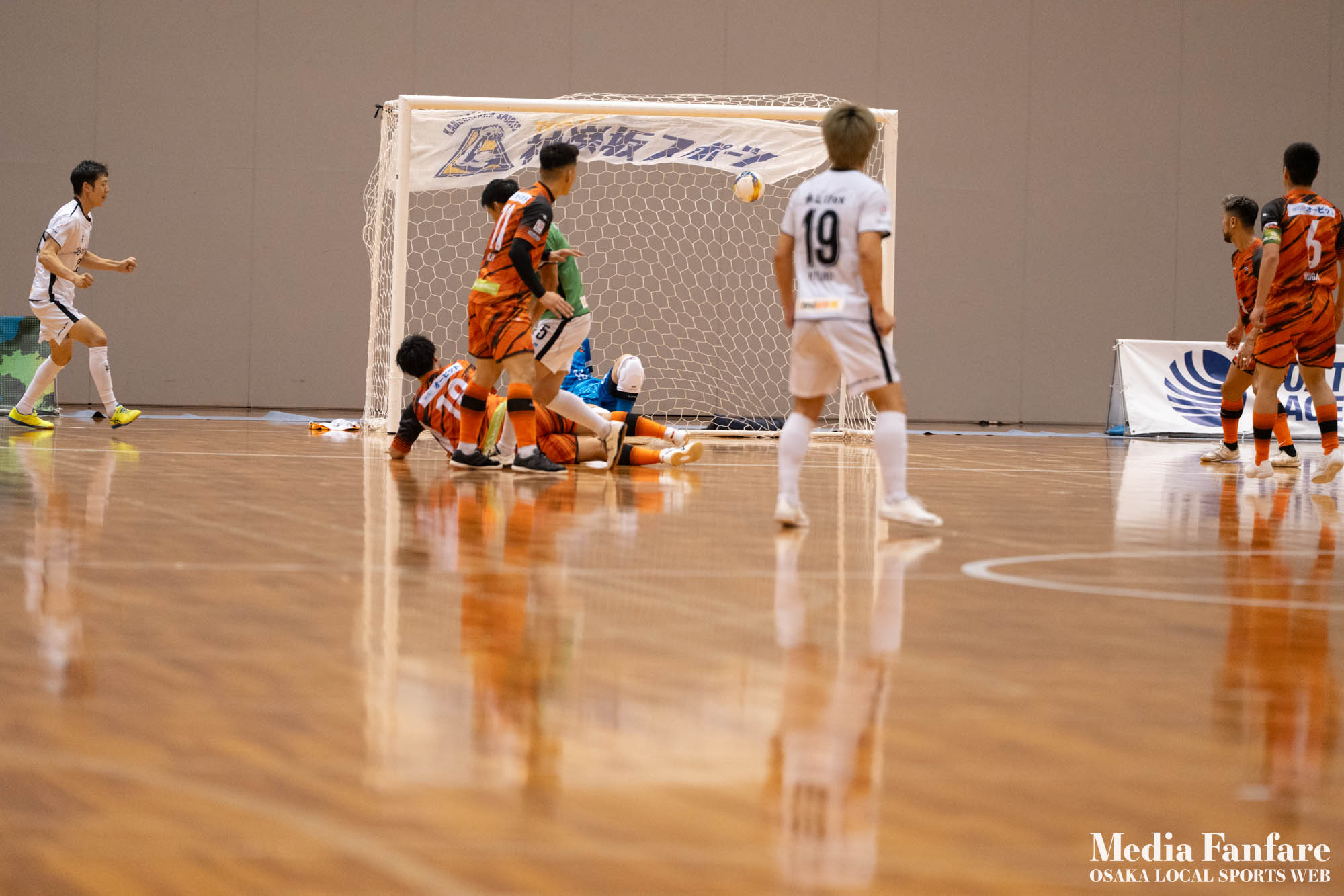 しかしフットサルはそう甘くはなく、相手は3位の強豪立川アスレティックFC。3点リードし、守備の意識が高くなる大阪。少しずつ自陣で攻撃を受ける時間が長くなる。