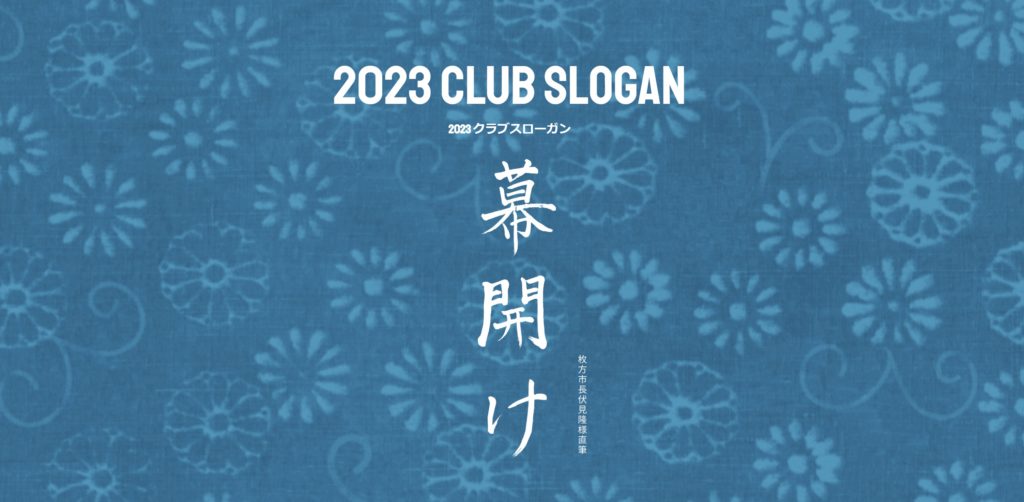 2023年シーズンのクラブのスローガンは、「幕開け」。クラブ創立20周年を迎えた2023年シーズン、二川新監督のもと、新たな歴史を築き上げていく、という思いが込められている。