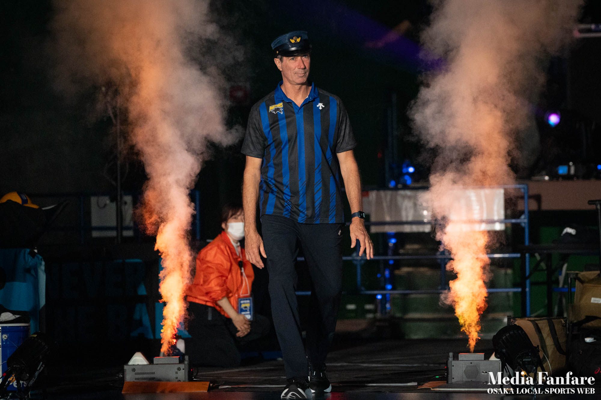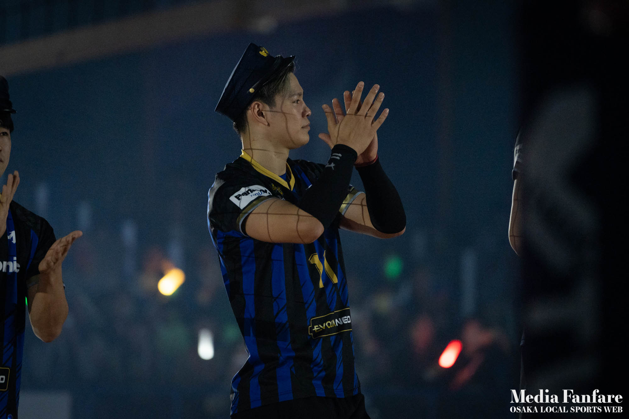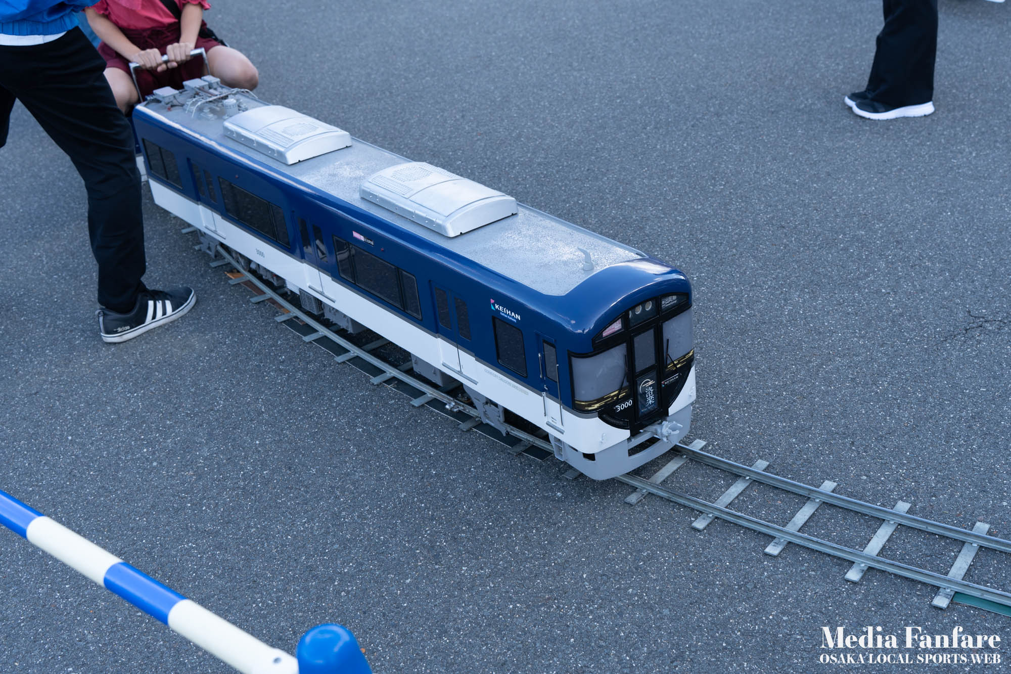この日は京阪コラボデーということで、車掌さんの帽子をかぶって選手入場。