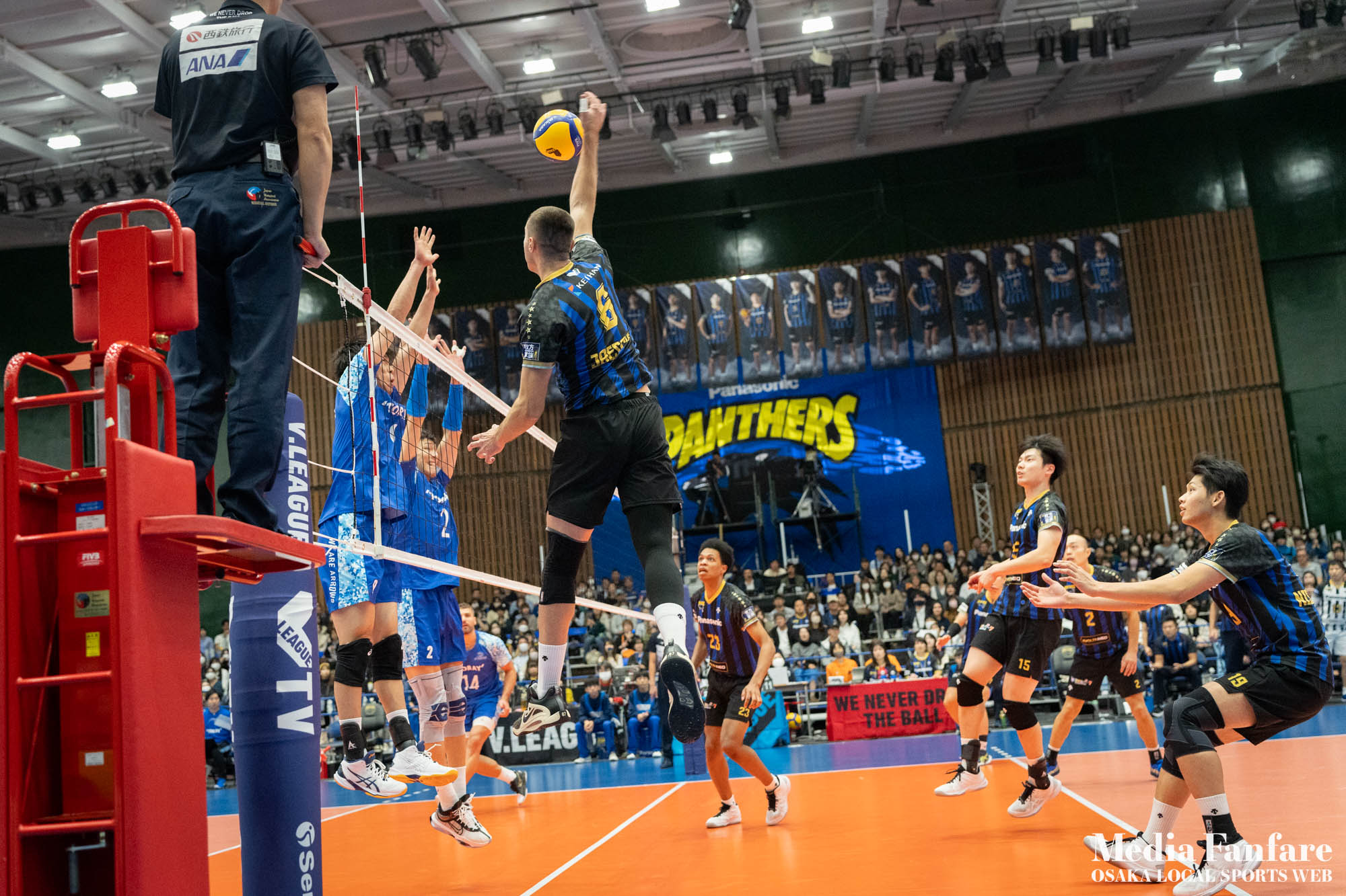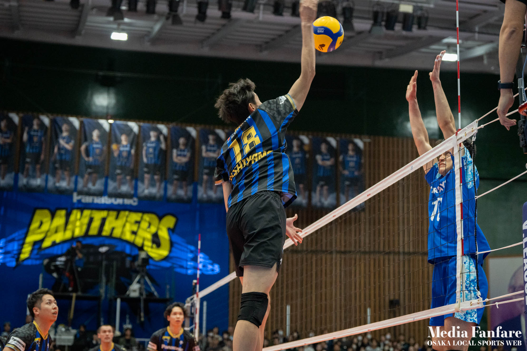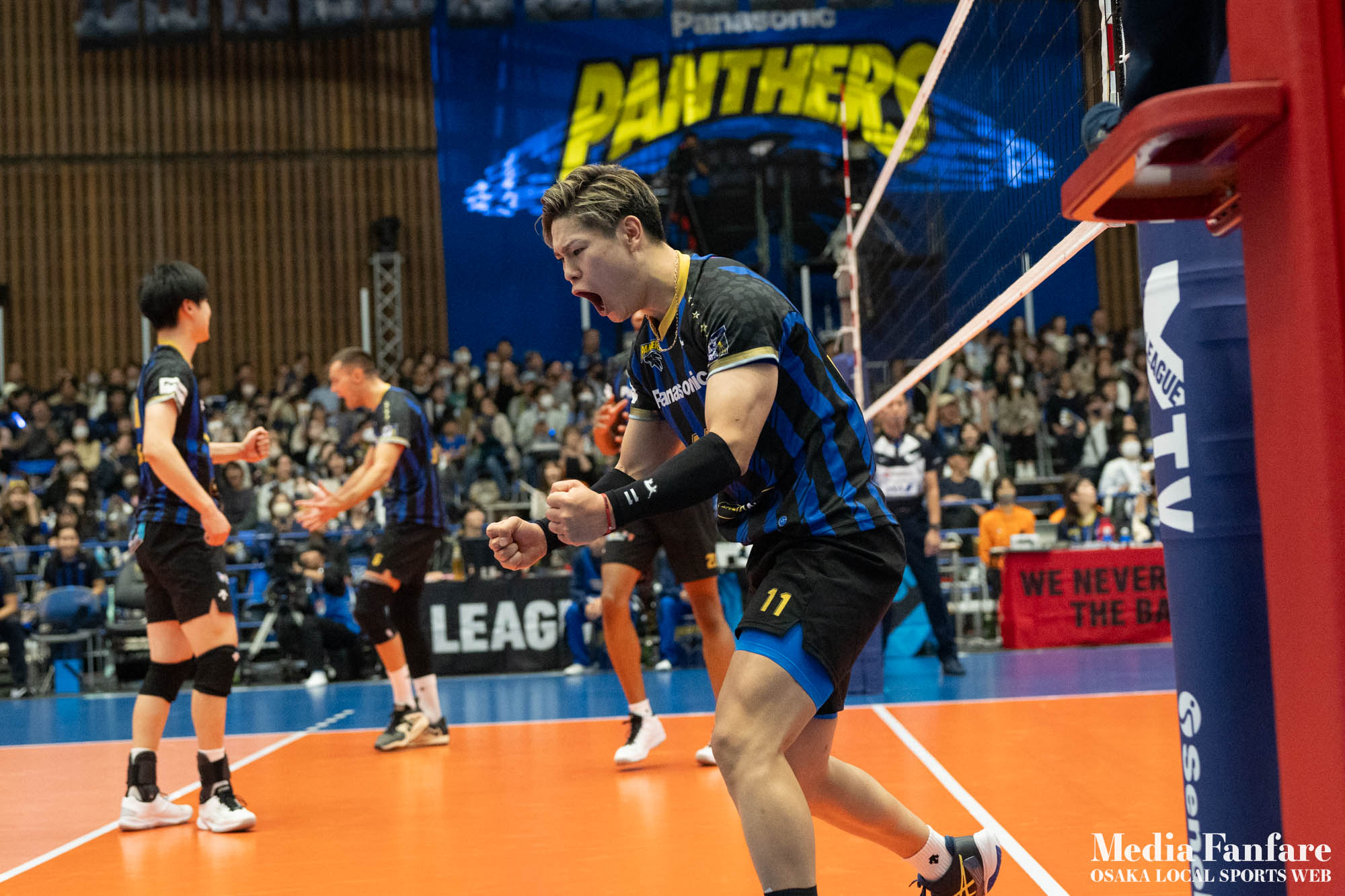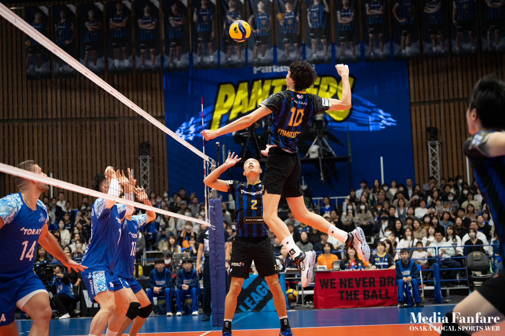 20-22と東レが2点リードしていたが、山内がサービスエースを決め、終盤に勢いに乗ったパンサーズが25-23でセットを先取。